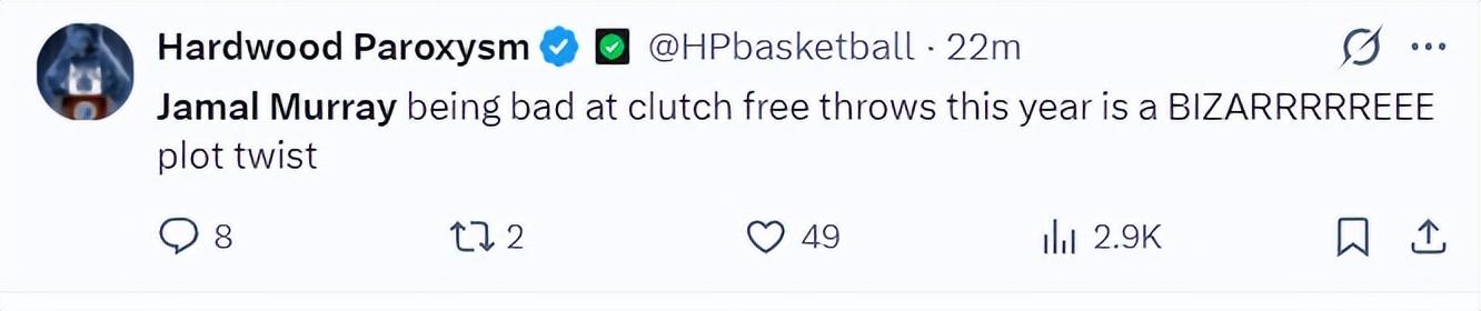 美媒:穆雷今年關鍵時刻的罰球都不佳,這場比賽他讓劇情發生了匪夷所思的轉折。