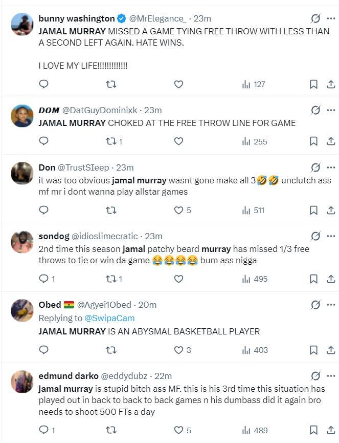 賽後穆雷終場前0.9秒丟絕平罰球直接登上了全美熱搜第二的位置,他成爲了全美球迷熱議的對象。