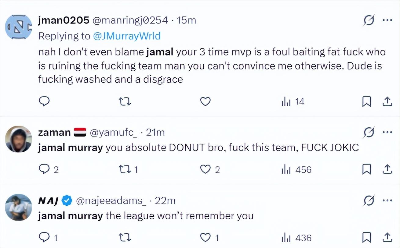 1.我覺得也不該全怪穆雷,三屆MVP約基奇表現也很差,他在故意搞破壞,他也是NBA的一個恥辱;