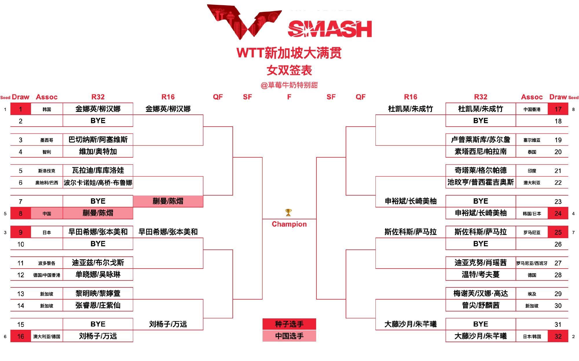 女雙項目國乒派出的是蒯曼/陳熠這對組合,這兩人首輪也是輪空,他們下一輪的對手瓦拉迪/庫庫洛娃VS波爾卡諾娃/布魯娜的勝者。