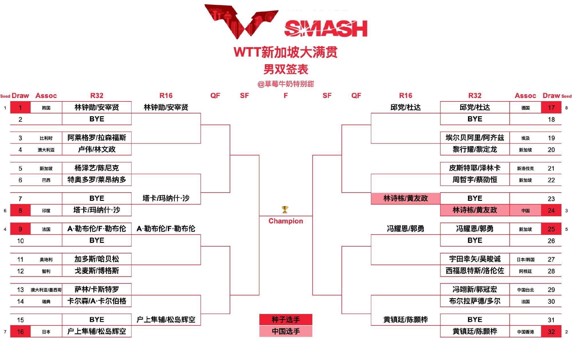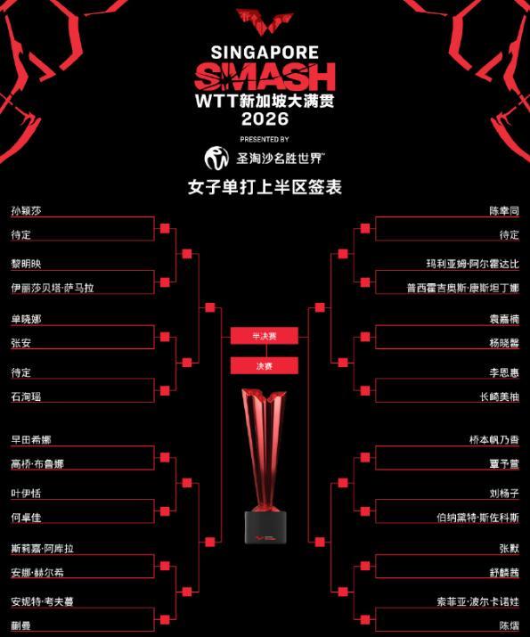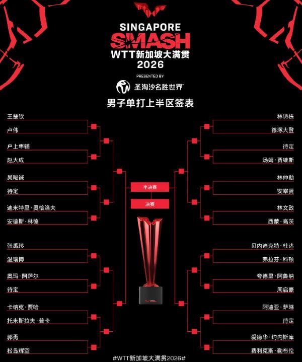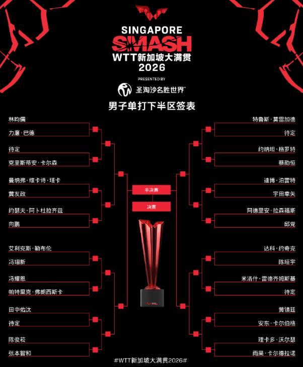 北京時間2月20日,WTT新加坡大滿貫抽籤儀式結束,男單、女單、女雙、男雙、混雙五個項目的籤表都出爐,不過因爲資格賽還沒打完所以一些單打球員首輪的對手還未確定。