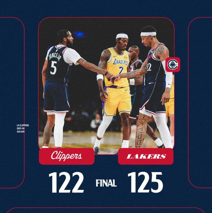 快船在一度落後湖人16分的情況下完成過反超,末節兩隊也鏖戰至最後一刻,詹姆斯終場前8秒出現了致命失誤,好在巴圖姆三分絕平不中湖人才涉險過關。這場比賽快船的科林斯、倫納德都傷退,詹姆斯13分11助攻,裏夫斯29分6籃板,東契奇38分11助攻8個三分。這場勝利讓湖人繼續排在西部第五。