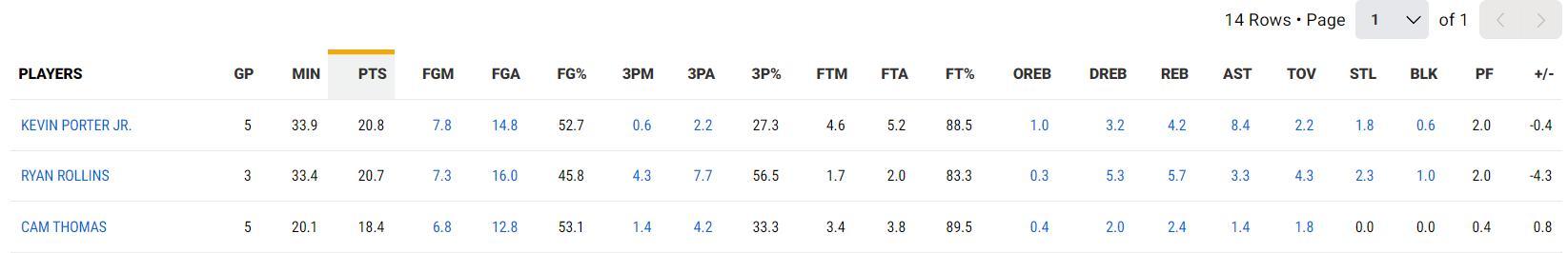 托馬斯加盟雄鹿後的5場比賽,場均20.1分鐘,拿到18.4分2.4籃板1.4助攻,命中率53.1%,三分命中率33.3%,正負值+0.8,他的效率太高了,而且雄鹿作爲東部第11他在場還是贏分的。