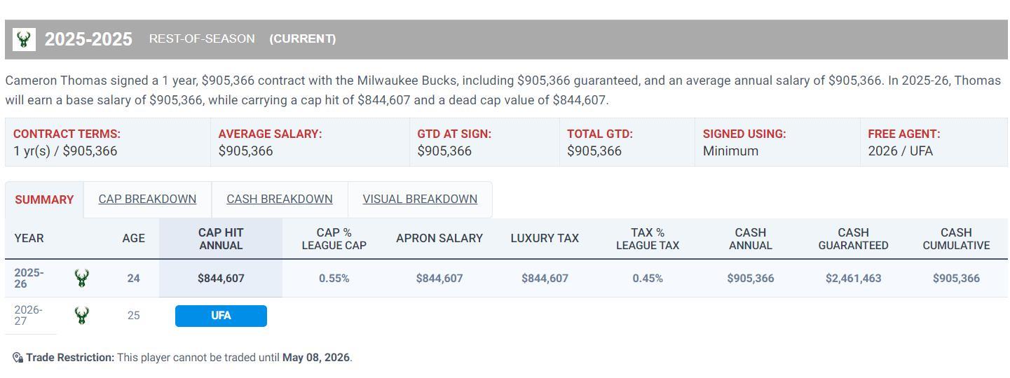 托馬斯在被籃網裁掉後,他與雄鹿簽下的是一份84萬的底薪合同,火箭距離第二奢侈稅徵點還剩125萬,按理說火箭也給得起,而且火箭隊正好是14+3名單,火箭隊沒有追逐他肯定是因爲烏度卡覺得他防守不行,可是火箭隊本賽季最差的方面是進攻,關鍵時刻只能看杜蘭特、申京兩個點。