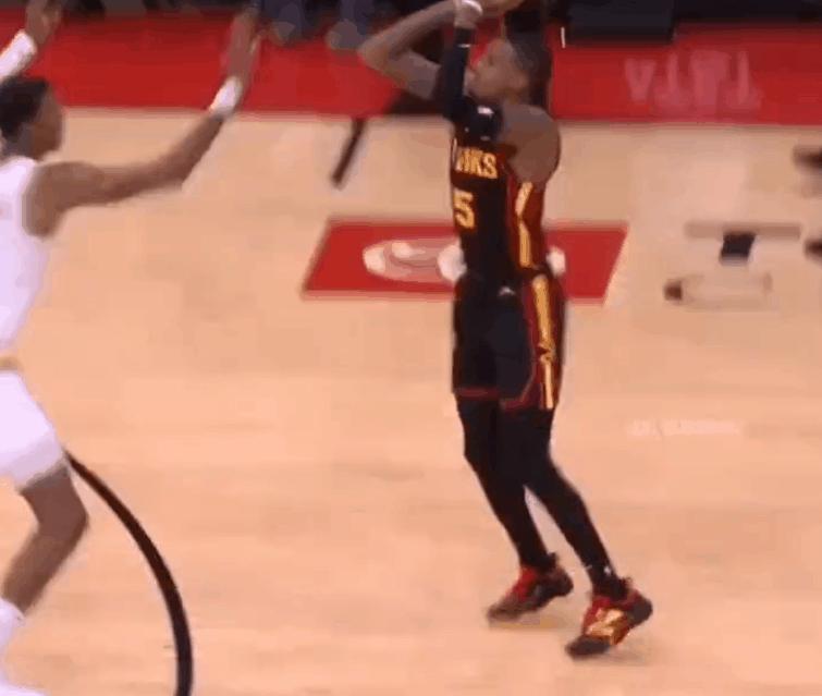 對!鎖住特雷·楊,然後以特雷·楊的方式三分命中。