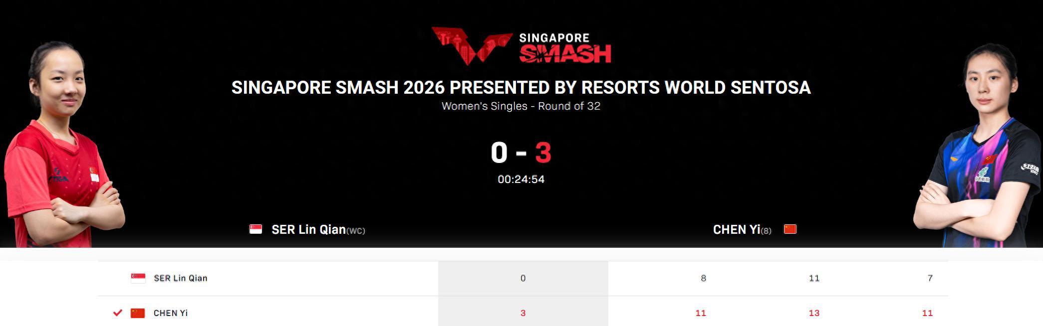 北京時間2月24日,WTT新加坡大滿貫女單1/16決賽,陳熠3-0橫掃舒麟茜晉級,三局比分:【11-8,13-11,11-7】。這場比賽大比分雖然是3-0但過程並不輕鬆,尤其是第二局陳熠一度領先多達4分被逼入絕境涉險過關,陳熠這位國乒的年輕小將似乎終於打破了心魔。