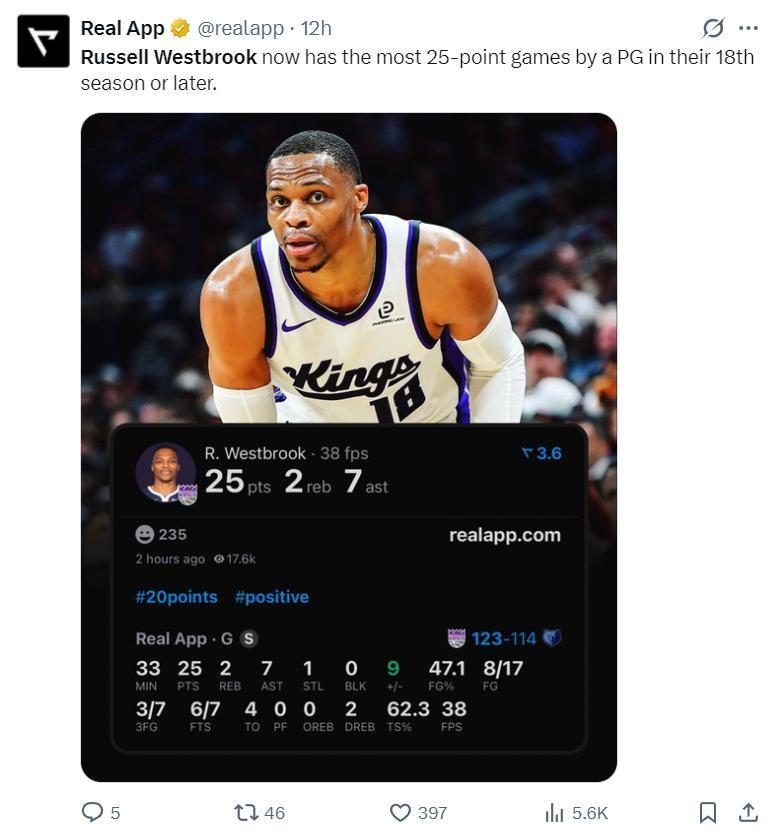 根據數據媒體的統計,威少在聯盟打了18個賽季,他已經是NBA歷史上拿下25+得分最多的控球后衛。