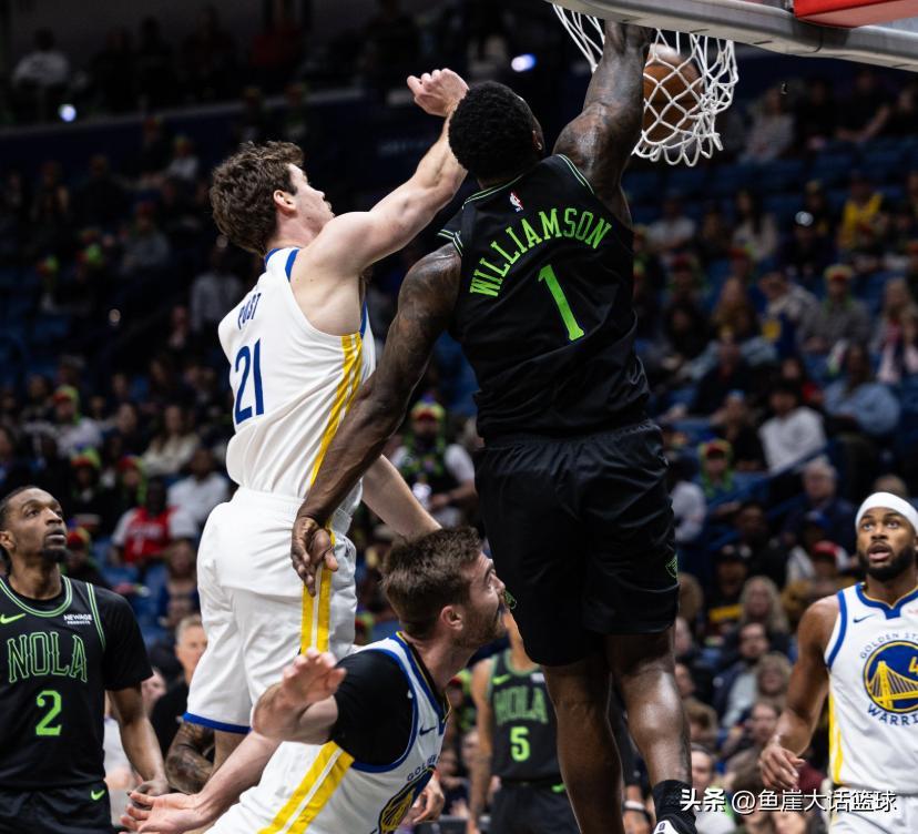 第三節比賽格林上反籃得分,小喬丹打成2+1後斯潘塞命中三分,穆雷中投命中後梅爾頓罰球得分,格林突破得分後穆雷命中三分,梅爾頓罰球得分後錫安也造成殺傷罰球得分,穆迪上籃得分後薩迪克-貝打板得分,梅爾頓突破得分後穆迪連得5分,接下來兩隊打得膠着比分交替上升,末尾階段麥戈文斯、費爾斯、馬特科維奇幫助鵜鶘取得領先,三節比賽結束勇士落後5分。第四節比賽普爾罰球得分,梅爾頓突破得分後普爾命中三分,隨後勇士一波8-1追平比分,錫安連得3分後桑托斯、波斯特內線得分,錫安連得5分後薩迪克-貝命中三分,接下來鵜鶘多點開花穩穩佔據領先,最終勇士大爆冷輸給了鵜鶘。