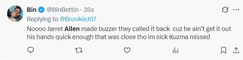騎士球迷對阿倫的絕平超時非常難過,他表示NO~阿倫還沒有把球跑出去,球出手前已經亮燈了就差那麼一點點,我太難受了。