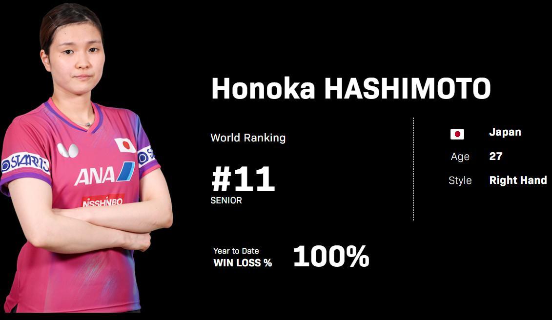 橋本帆乃香在本屆新加坡大滿貫並沒有兼項,因爲她是削球手都是注重單打,但在WTT香港總決賽後她遭遇了肩傷,隨後在2026賽季的第一站WTT多哈冠軍賽、WTT多哈球星挑戰賽、WTT馬斯喀特常規賽她都沒有出戰,直到亞洲盃她才復出,但根據日媒的說法橋本是帶傷出戰,她在本次新加坡大滿貫止步16強也只能用肩傷這個藉口了。