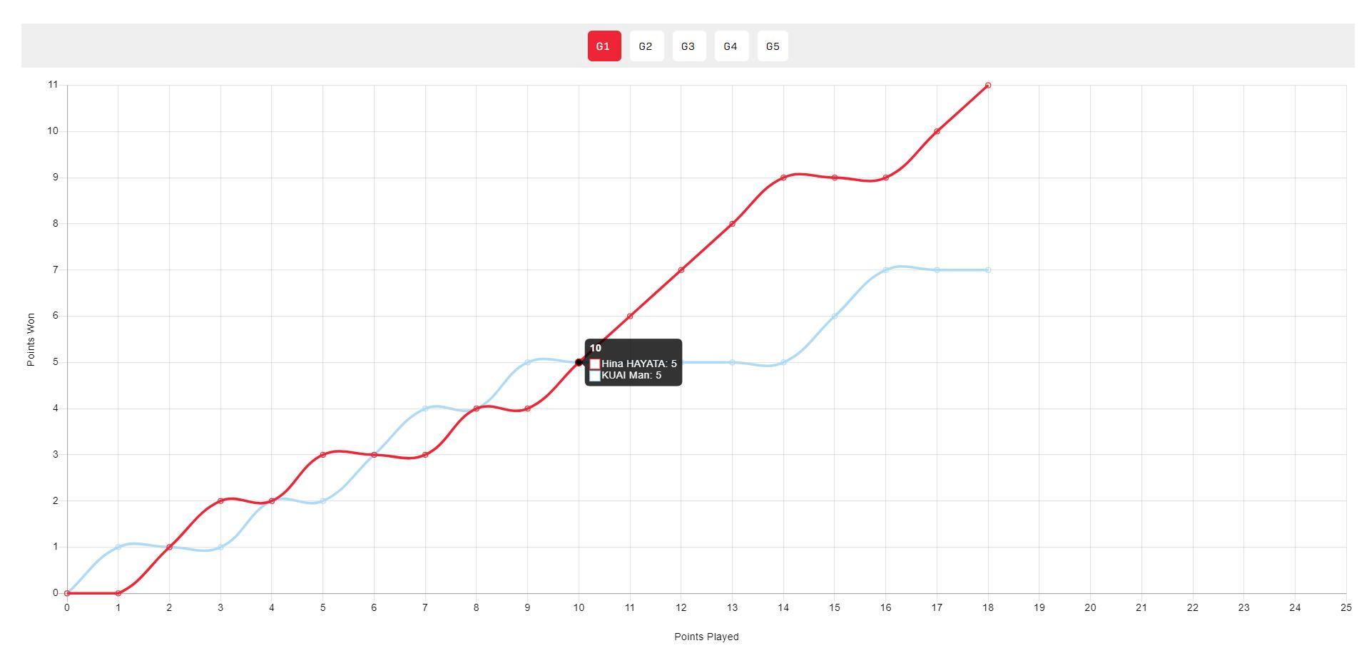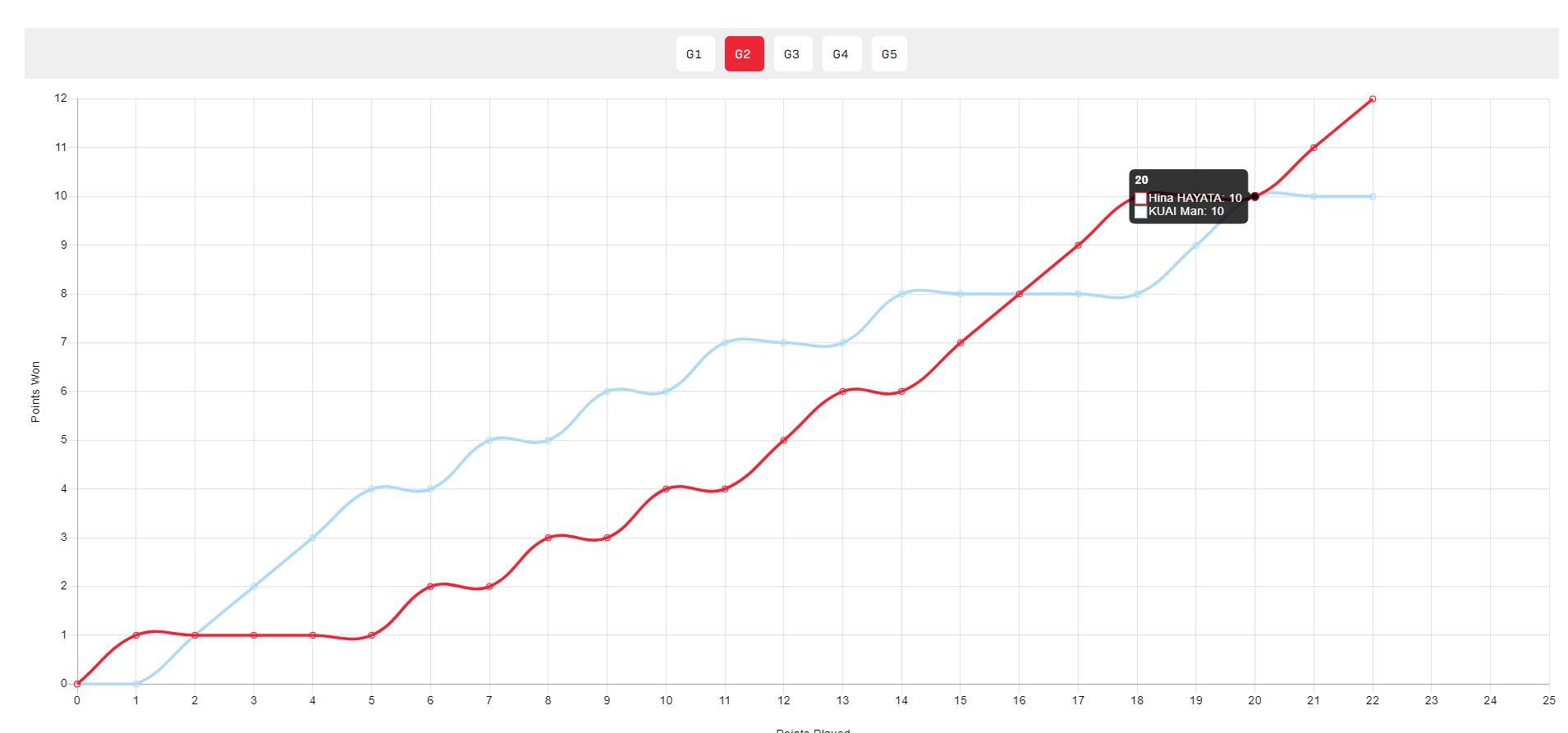 第二局蒯曼4-1領先,隨後6-2繼續領先,早田追到6-7後,蒯曼再度8-6拉開,早田希娜追到8-8,一鼓作氣10-8逆轉拿到局點,蒯曼再度崩盤。第三局與第四局蒯曼贏得非常輕鬆,早田希娜將體能留到搶五。