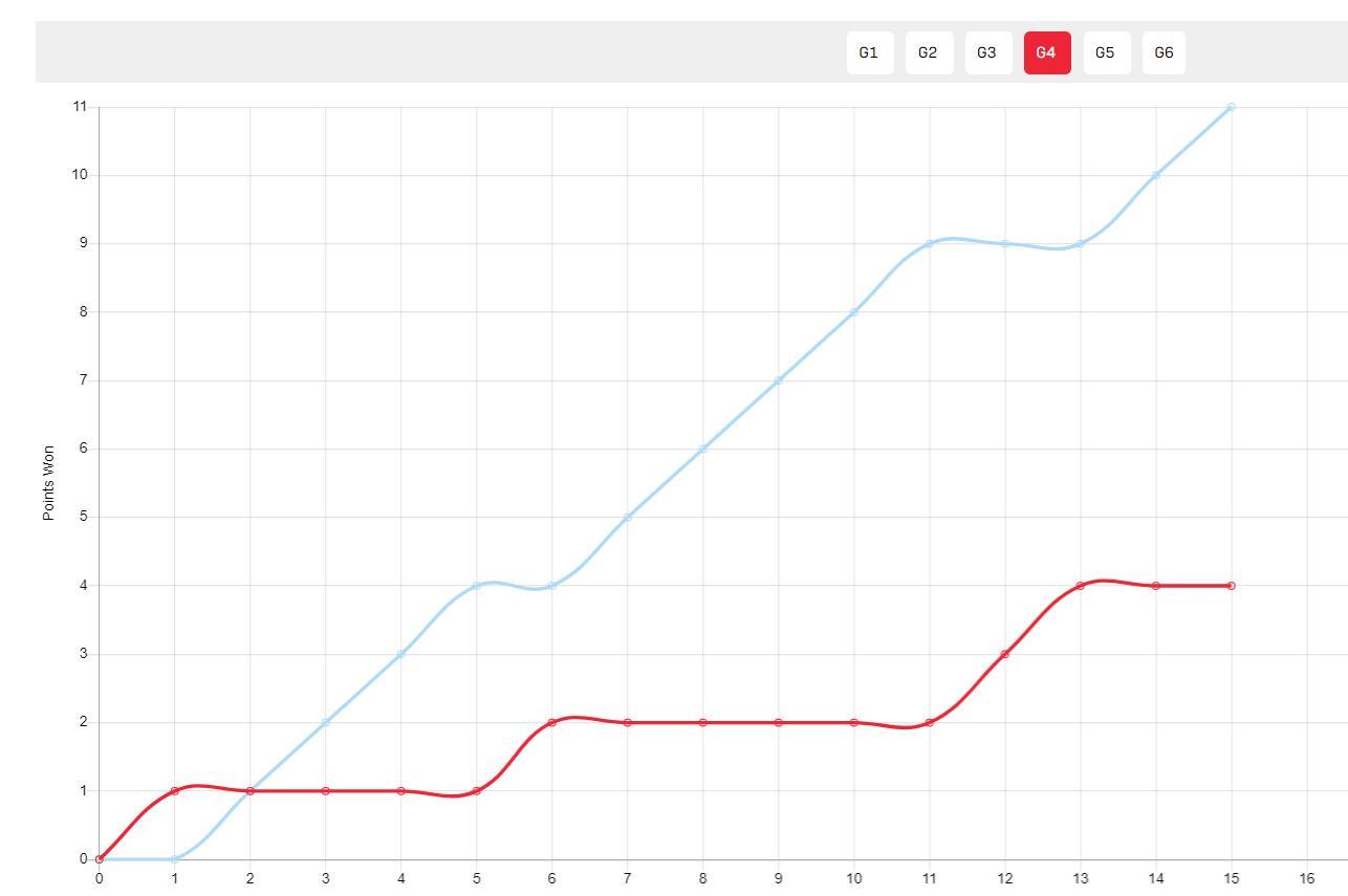 第四局林詩棟直接崩盤,開場1-4落後,隨後2-9落後,最終小勒11-4速勝。