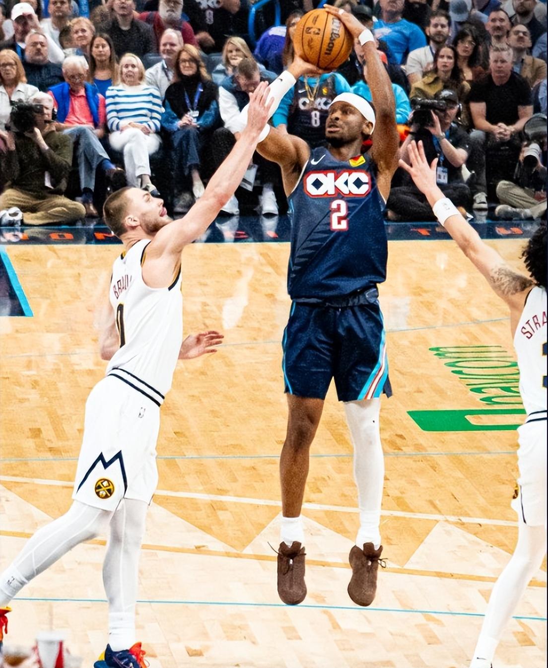 這場比賽亞歷山大在常規時間四節打完後就被DNP了,第四節還剩2分01秒卡魯索三分命中,末節還剩1分23秒卡魯索三分再度命中,沒有這兩個三分雷霆已經跪了。約基奇籃下完成勾手後,終場前26秒亞歷山大撤步三分被布勞恩大帽,隨後卡約三分反絕殺也未能命中。