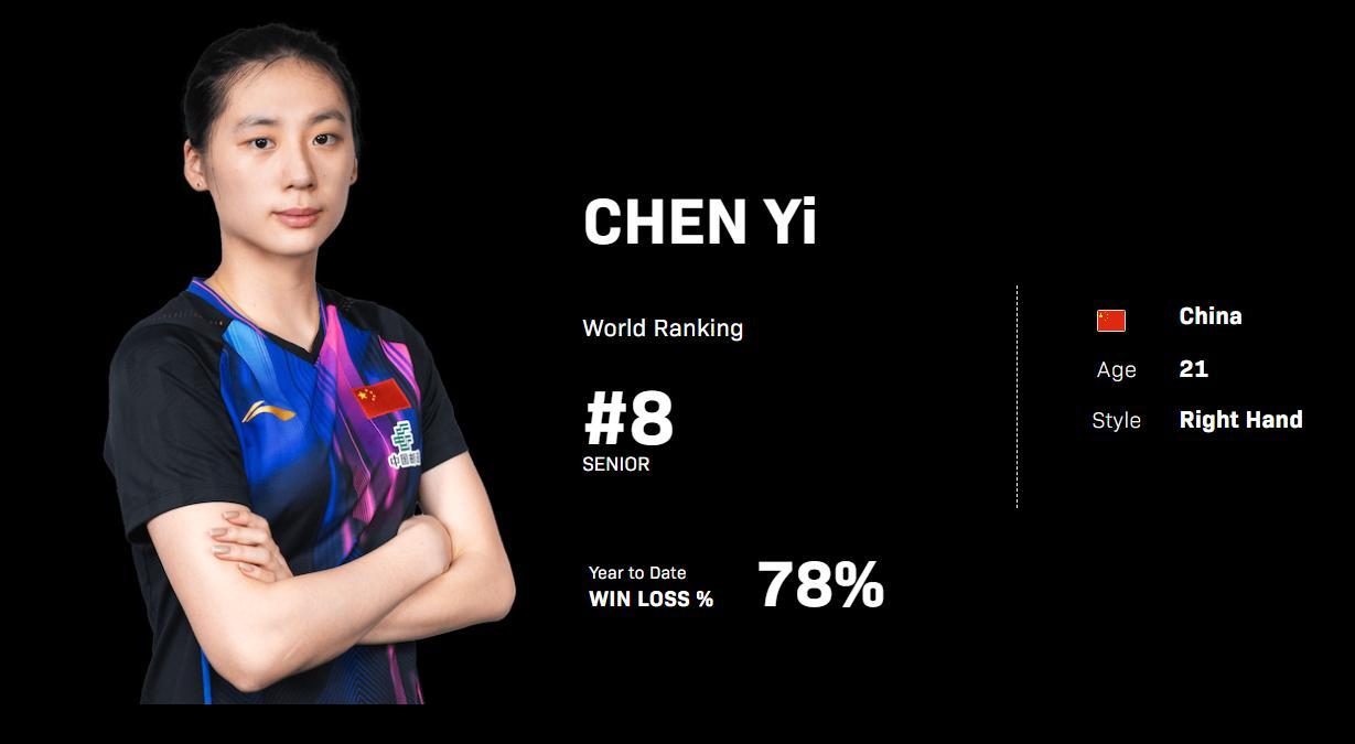 今年21歲的陳熠世界排名第八,陳熠與孫穎莎的交手記錄是1勝5負,很明顯世界第一的孫穎莎佔據絕對優勢,但陳熠也算是本屆大滿貫的黑馬之一,在換了於子洋做主教練後陳熠似乎突破了心魔在關鍵分的把握明顯提升。