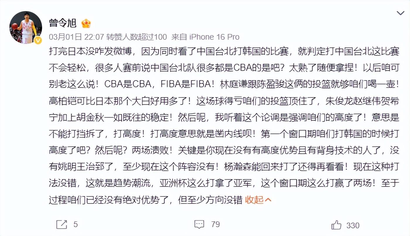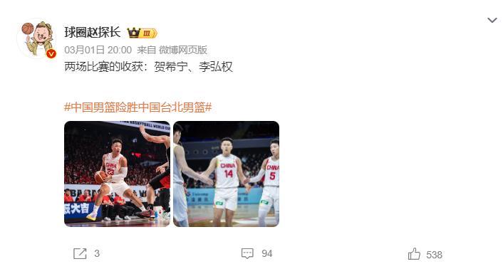 北京時間3月1日,中國男籃100-93擊敗中國臺北男籃拿到二連勝,這世預賽第二個窗口期全勝爲男籃晉級第二階段奠定了基礎,七月份再贏一場就可以鎖定前三的席位。全新的陣容讓男籃收穫頗豐,我認爲一大收穫就是賀希寧。