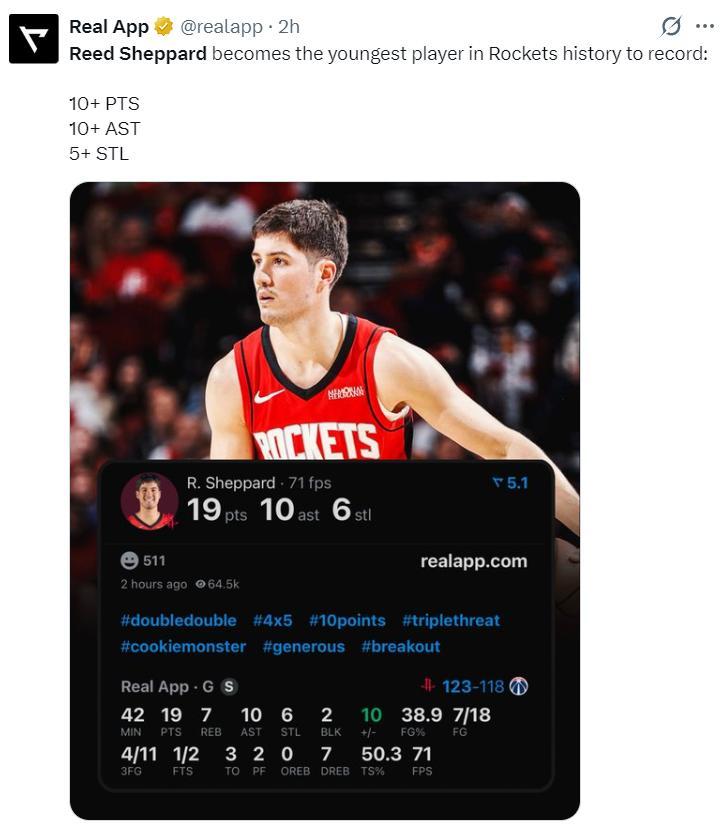 北京時間3月3日,火箭123-118擊敗奇才穩住西部第三的席位。這場比賽杜蘭特與申京雙雙斬獲30+的數據,但這兩人合計出現14次失誤,所以這場比賽贏球的第一亮點應該是裏德-謝潑德,他在攻防兩端的貢獻纔是最出彩的,小賈傷停或許成爲謝潑德發跡的一個轉折點。