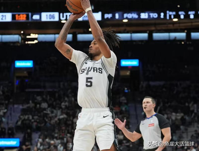 本場比賽馬刺是多點開花,最終馬刺獲得一場大勝不說,同時這場比賽馬刺更是8人得分上雙,其中文班亞馬5中3得到了10分8籃板4助攻3搶斷6封蓋的數據,其中罰球5中3。其他的馬刺球員,福克斯得到了11分5籃板7助攻的數據,卡斯爾得到了15分4籃板10助攻的數據,尚帕尼得到了10分7籃板2助攻的數據,瓦塞爾得到了22分5籃板1助攻的數據,布萊恩特得到了11分9籃板3助攻的數據,凱爾登得到了12分9籃板的數據,哈珀得到了22分2籃板2助攻的數據。