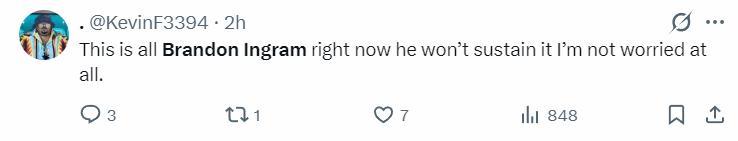 美球迷一早就嘲諷英格拉姆:這就是現在的布蘭登-英格拉姆,他不會一直保持這樣的狀態,我一點也不擔心。(沒想到他還真的說中了)