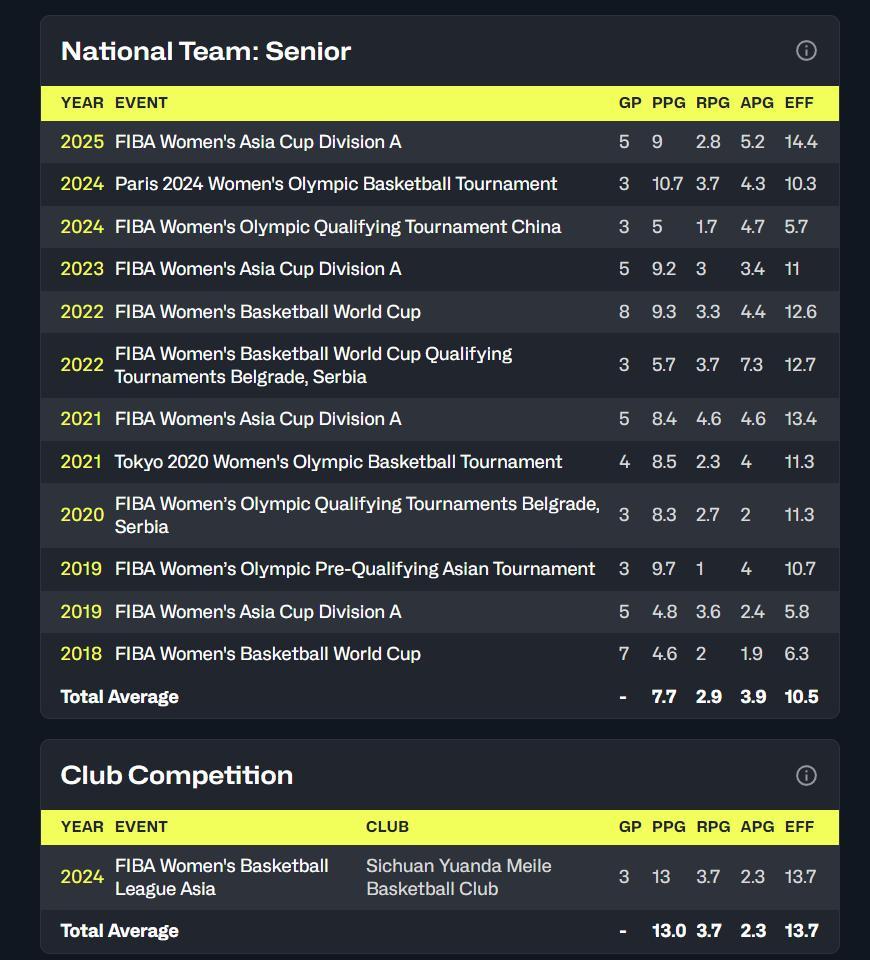 本賽季31歲的老將王思雨代表四川女籃出戰12場比賽,場均23.2分鐘,拿到9.8分6.2助攻3.3籃板1.5搶斷0.4蓋帽,命中率47.4%,三分命中率32.2%,她在聯賽的表現很一般不過她的身體狀態已經比去年更佳,宮魯鳴也應該是看中她的突破能力。