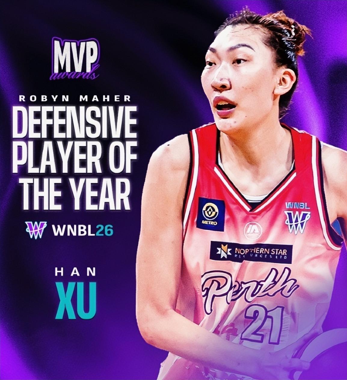 韓旭在WNBL拿到了最佳防守球員與最佳二陣,總決賽第二場她拿到18分9籃板6助攻4蓋帽的不俗數據,本賽季場均15.5分6.8籃板1.4助攻1搶斷1.93蓋帽1.63個三分球。