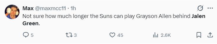 太陽球迷:不清楚太陽還要讓格雷森-阿倫在替補席打球多久;