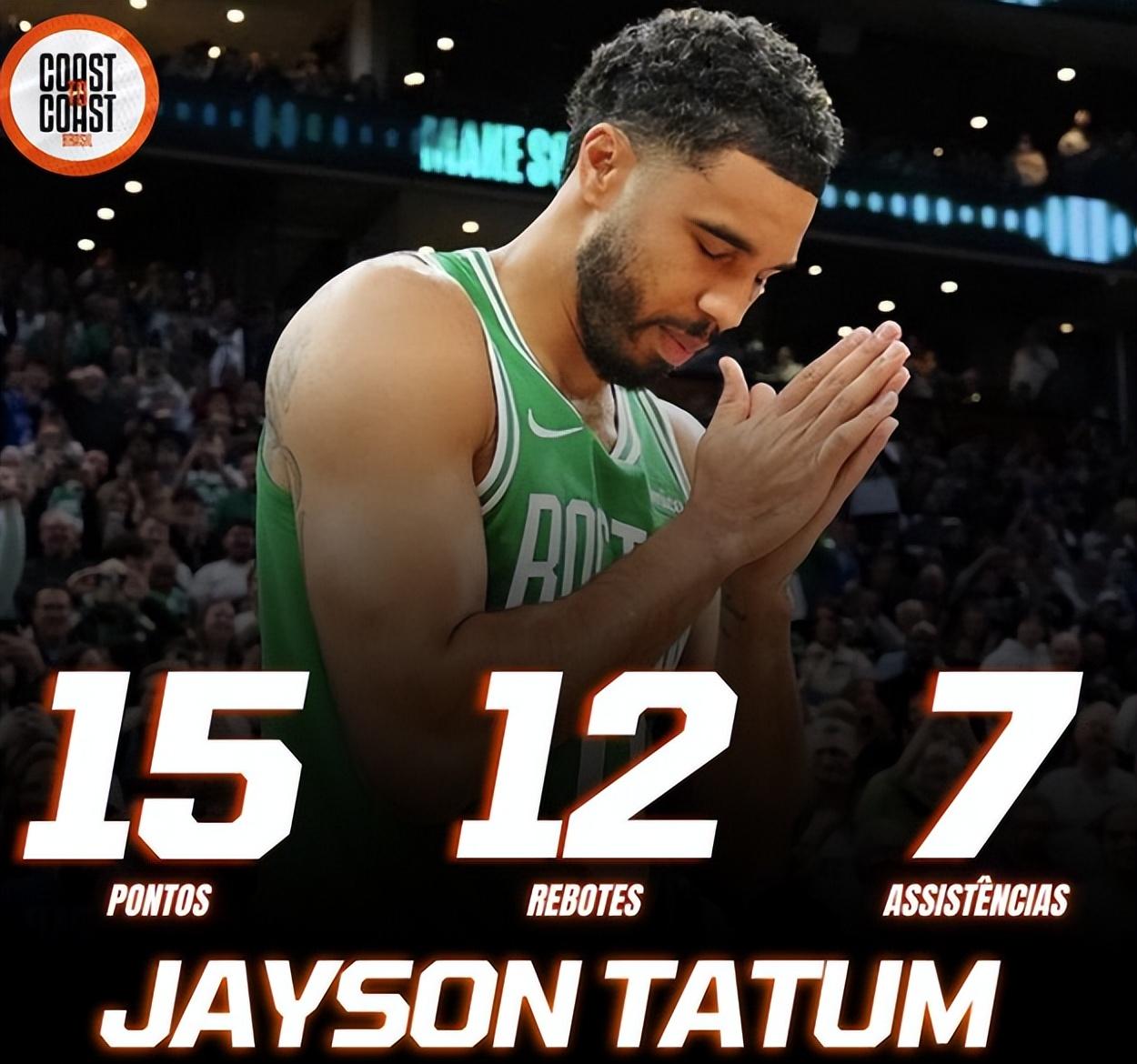 塔圖姆太久沒有打高對抗的比賽,開場明顯諸多不適,扣籃不進,中投連連打鐵,首節2中0拿0分2籃板2助攻,次節6中2+三分3中1拿到5分3籃板3助攻,第二節兩次暴扣有一個沒有扣進。