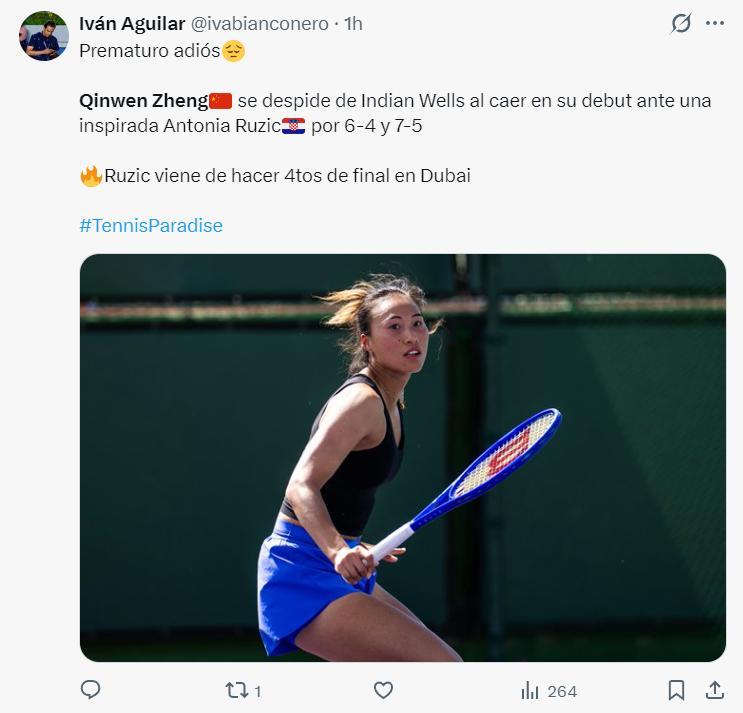 北京時間3月8日,WTA印第安維爾斯站(1000+賽事)第二輪,鄭欽文0-2不敵魯季奇,兩盤比分:4-6、5-7。克羅地亞選手魯季奇晉級印第安維爾斯站女單32強,而24號種子鄭欽文則首秀被淘汰。