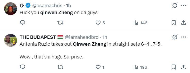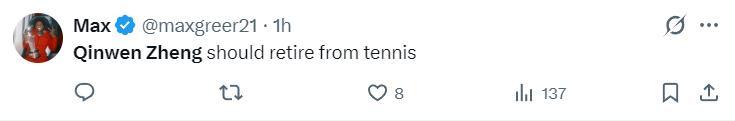 美國球迷:鄭欽文應該在網球界退役了。