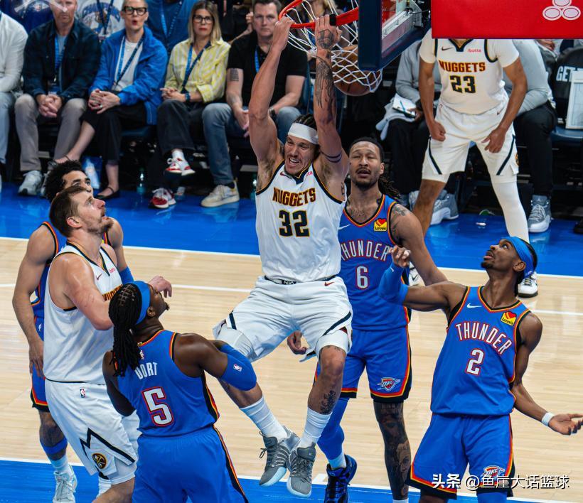 掘金輸掉比賽真的相當可惜,畢竟這場比賽一開始掘金佔據大比分領先,可後續雷霆追上比分不說還取得領先,但是掘金也打得堅韌成功追上比分,尤其是第四節最後階段掘金已經是追上了比分,可惜後續亞歷山大命中三分完成絕殺,最終掘金無奈輸球。全場比賽結束約基奇得到了32分14籃板13助攻的數據,穆雷得到了21分8籃板6助攻的數據,戈登得到了23分10籃板3助攻的數據,哈達威得到了28分2籃板2助攻的數據。
