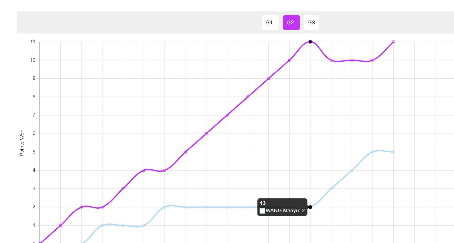 第二局開場大藤4-1領先,隨後王曼昱追到2-4,從這裏世界第二的王曼昱直接崩盤了,大藤直接10-2拿到了局點,最終11-5輕鬆拿下勝利。