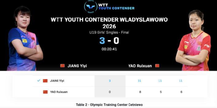 三天之前在WTT青少年常規挑戰賽弗瓦迪斯瓦沃沃站U19女單決賽,姚睿軒是0-3惜敗姜依依。(去年全運會青年組女單決賽,姚睿軒是4-2擊敗姜依依)此役算是姜依依完成了復仇,這兩人都是16歲的小將,也都是跨級錘鍊。