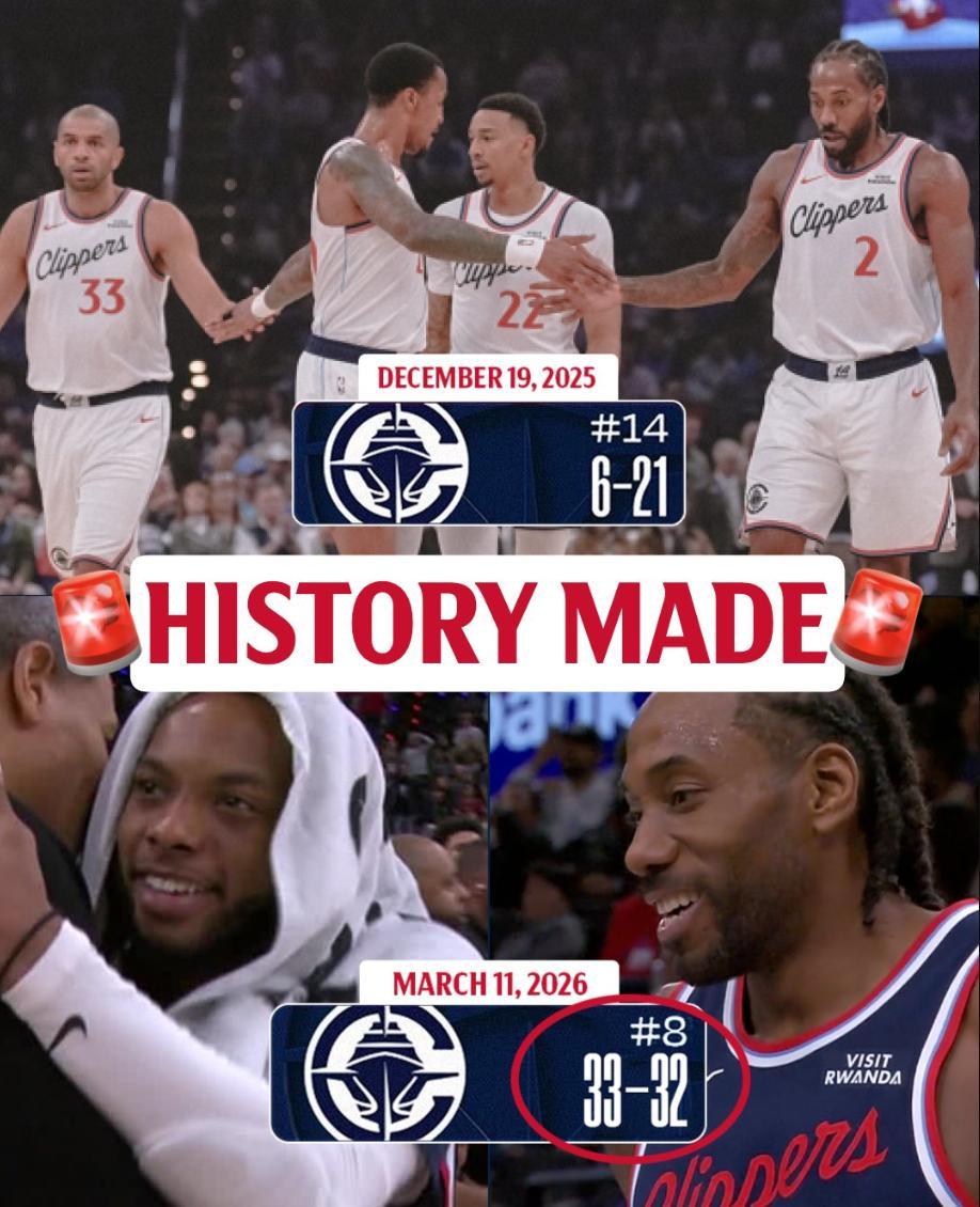 這場比賽後快船33勝32負勝率已經超過五成,快船成爲NBA歷史上第一支在開賽落後15場還能打回勝率五成的球隊,在6勝21負後他們拿到了27勝11負。很明顯倫納德就是快船能完成這樣豐功偉績的關鍵球員。
