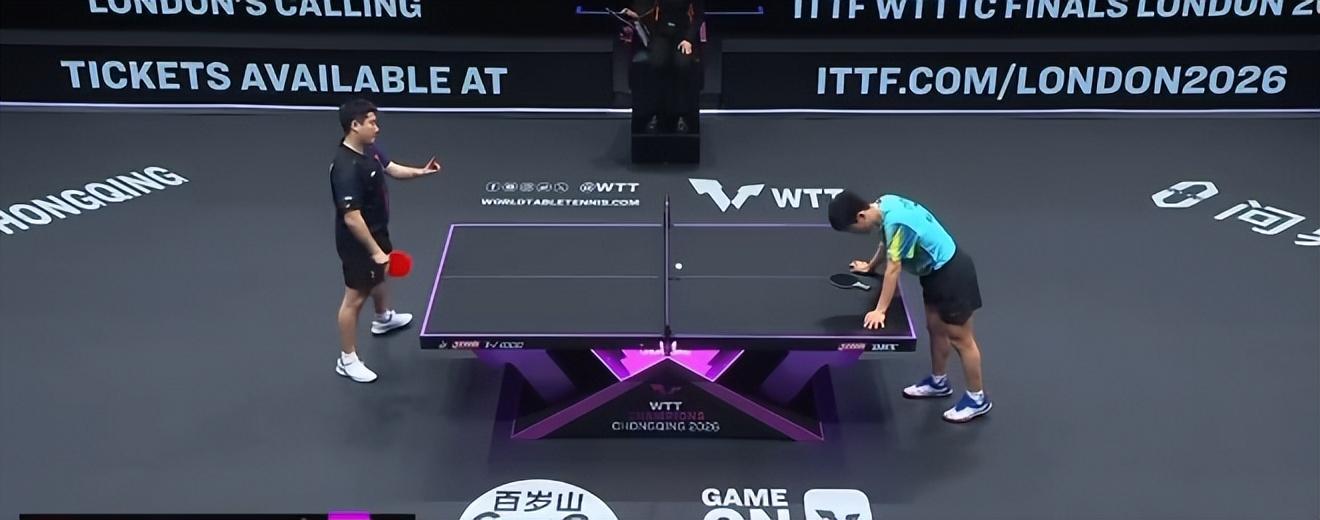 這一球向鵬非常沮喪,他連球拍都放在球檯上沮喪的低着頭,梁靖崑在一旁表示了歉意,有時候擊潰士氣就是那麼一瞬間的事情,梁靖崑終於做到了。