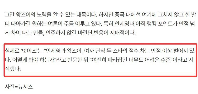 文中寫道:美媒《Neties》寫道:王祉怡雖然擊敗了安洗瑩一次,但這兩位女子單打明星的差距在100分以上,王祉怡依舊非常難追趕上安洗瑩。在這場比賽之前安洗瑩面對王祉怡已經10連勝,而且此役後安洗瑩VS王祉怡也是18勝5負絕對佔優。