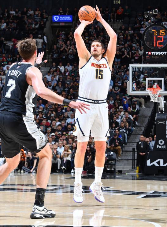第三節穆雷終於覺醒了,單節8中5拿到14分1助攻,他爆發的階段一度幫助掘金縮小到個位數,約基奇單節4中3+罰球7中7也拿到14分7籃板4助攻2搶斷1蓋帽,這兩人合計拿到28分,約基奇三節31分18籃板7助攻2搶斷1蓋帽,馬刺還是領先掘金12分之多。