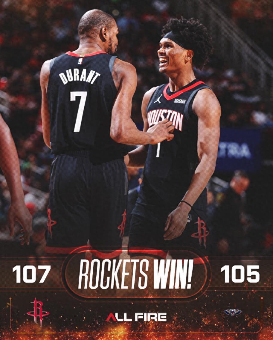 終場前7秒錫安失誤,杜蘭特被犯規兩罰全中,火箭領先3分,墨菲被犯規兩罰一中拼下前場籃板但外線三分不中火箭過關。