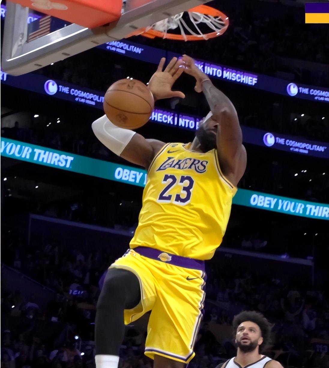 但好景不長第三節的湖人突然就沒有了防守,掘金這一節瘋狂追分,詹姆斯這一節也只有2次出手拿2分,三節15分。