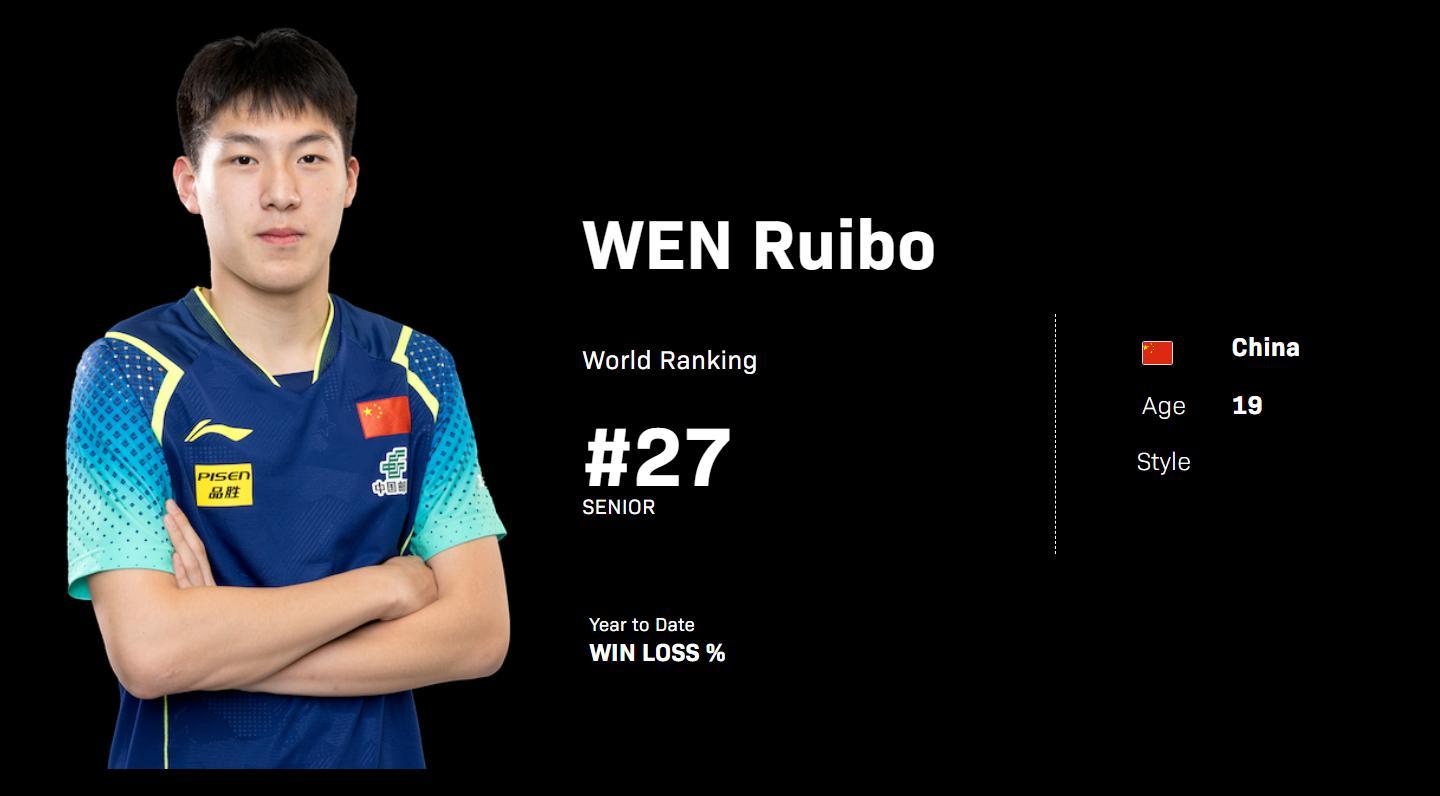 19歲的溫瑞博世界排名僅僅27位,但他卻是國乒唯一進入四強的男單選手(王楚欽碧迪松島止步八強),換言之這位19歲的小將是國乒拿到本屆重慶冠軍賽男單冠軍的唯一曙光。