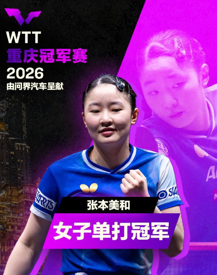 WTT重慶冠軍賽女單決賽,張本美和4-3蒯曼拿到冠軍,七局比分:【11-6,9-11,7-11,11-9,11-6,9-11,11-5】。17歲的張本美和拿到WTT生涯第九個冠軍,也是她個人WTT冠軍賽首個冠軍,17歲的張本美和也超過小勒布倫成爲WTT歷史最年輕的冠軍賽冠軍,她再度創造了歷史。
