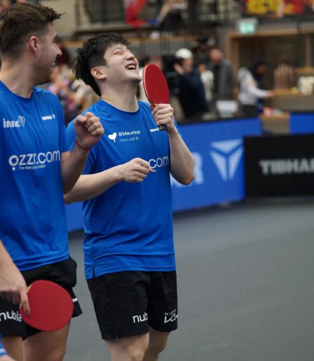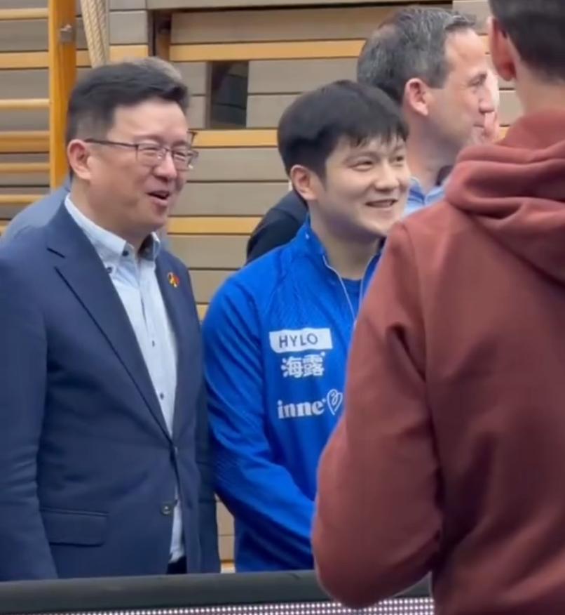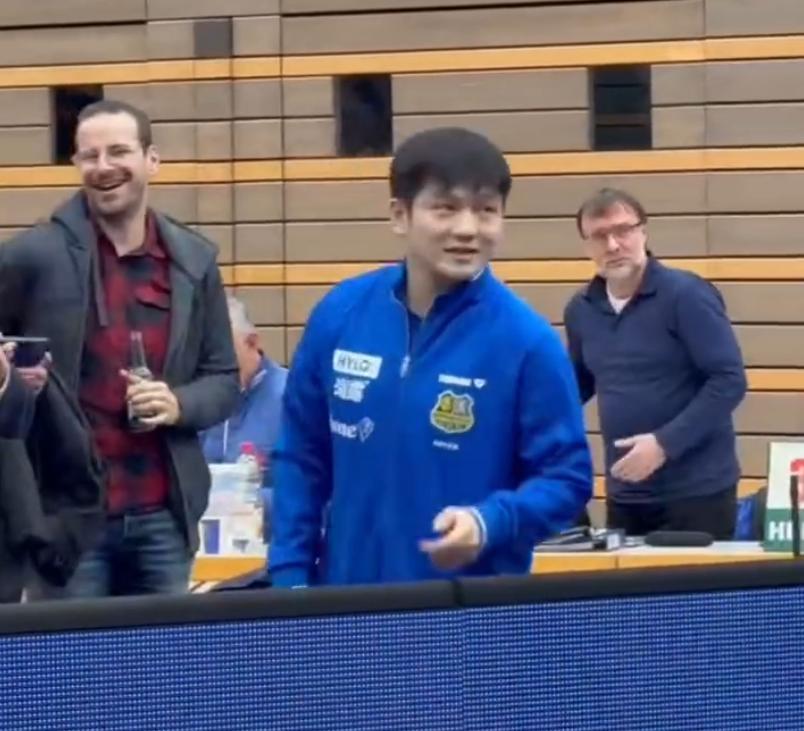 樊振東在德甲打球那種鬆弛感、放鬆程度都是在乒超、WTT賽場上完全看不到的,薩爾布呂肯這座小城鎮成爲了小胖慰藉心靈的港灣,他的隊友們對他也是非常之好。這場比賽還有一個小插曲,中國駐法蘭克福領事館總領事、薩爾蘭州辦公廳主任特意到場看樊振東打球。
