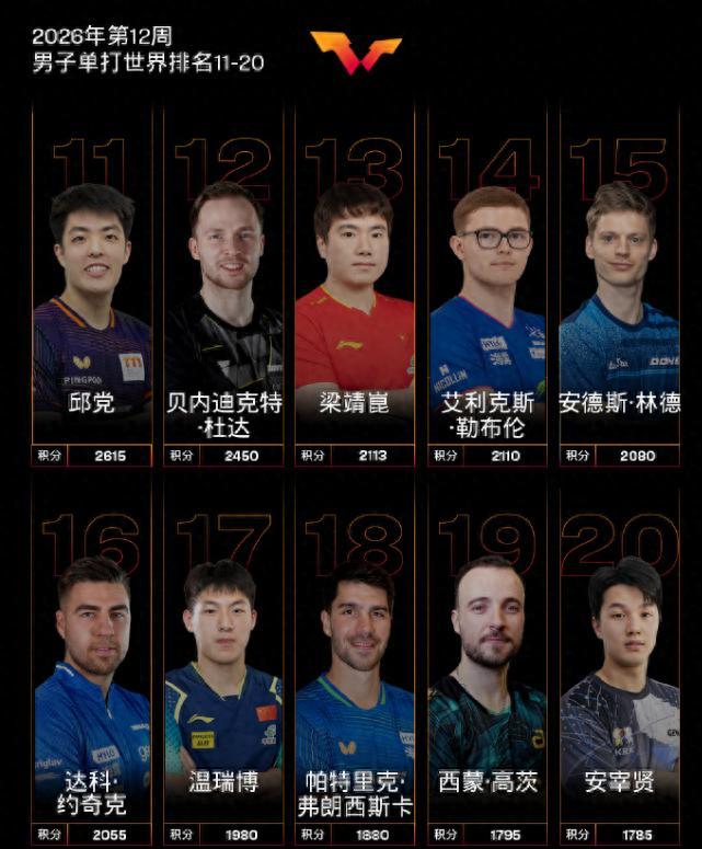 WTT重慶冠軍賽後,國乒19歲的小將溫瑞博進入世界前20(他升到世界第17),而29歲的梁靖崑依舊排在世界第13的位置。3月30日舉行的澳門世界盃溫瑞博、梁靖崑都會參與,確定的男隊名單:王楚欽、林詩棟、梁靖崑、周啓豪、溫瑞博。