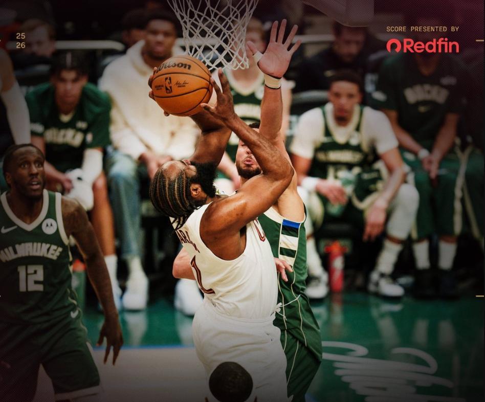 終場前5分10秒皮特-南斯外線三分命中縮小到5分,最關鍵的一次進攻阿特金森沒有給米切爾而是給了36歲的哈登,哈登漂移中投命中再度將分差拉開到7分,小波特與斯特魯斯相互命中三分,隨後兩隊進入罰球大戰,終場前20秒哈登兩罰全中幫助騎士鎖定勝局。
