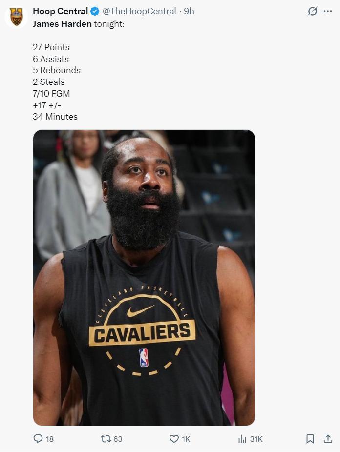 此役後哈登619次拿到25+5+5歷史第三,僅次於詹姆斯、威少,哈登帶傷依舊創造紀錄。