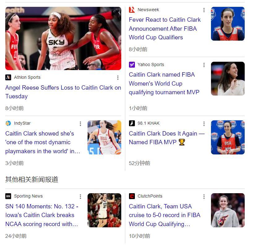 這五場比賽美國隊+210分非常恐怖,美國隊也是世界盃的衛冕冠軍。克拉克這是首次代表美國成年隊參與FIBA的比賽,也是她自2021年代表美國女籃參與U19系列賽後首次身披美國隊的戰袍,她的個人狀態非常出色。