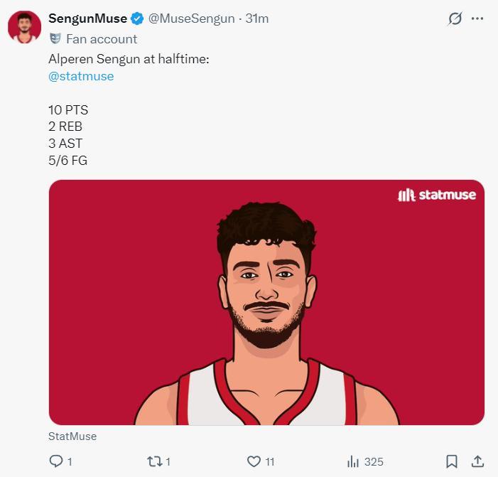 整個上半場申京17分鐘,6中5,拿到10分3助攻2籃板0失誤,有了申京後火箭多一個持球點的確會好得多,他也是幫助火箭咬住分差的關鍵,他也隔扣了艾頓一個。