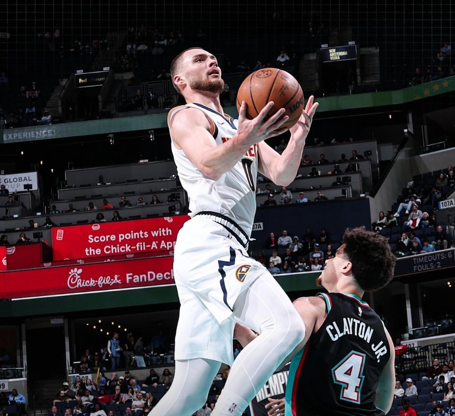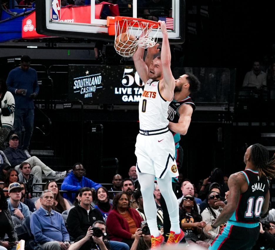 末節約基奇在場下休息兩隊的分差都拉開到10分了。約基奇登場後連續得分助攻縮小到只差5分進入最後5分鐘,可灰熊立馬打出了一波6-0的攻勢再度拉開到11分,很明顯阿德爾曼的輕敵讓掘金付出了極大的代價,約基奇又攤手,約基奇傳給卡約只可惜未能命中續命球,約基奇吞下第10個失誤,穆雷追進三分都還差5分只剩4.5秒比賽無力迴天。
