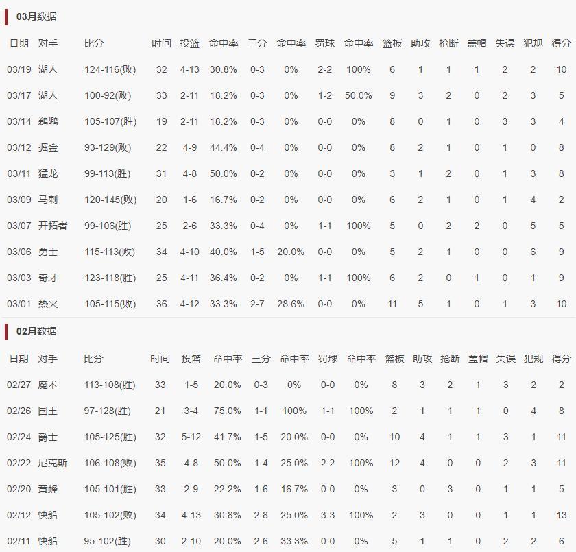 在2月11日之前伊森的三分球命中率都接近五成,不知道他家裏發生了什麼變故,他突然就變得不會投籃了,不管是三分、中投他都各種投丟,2月11日-3月19日他打的17場比賽,三分球68中11,三分命中率只有16.1%,失去了伊森的三分威脅火箭空間就更狹小了。