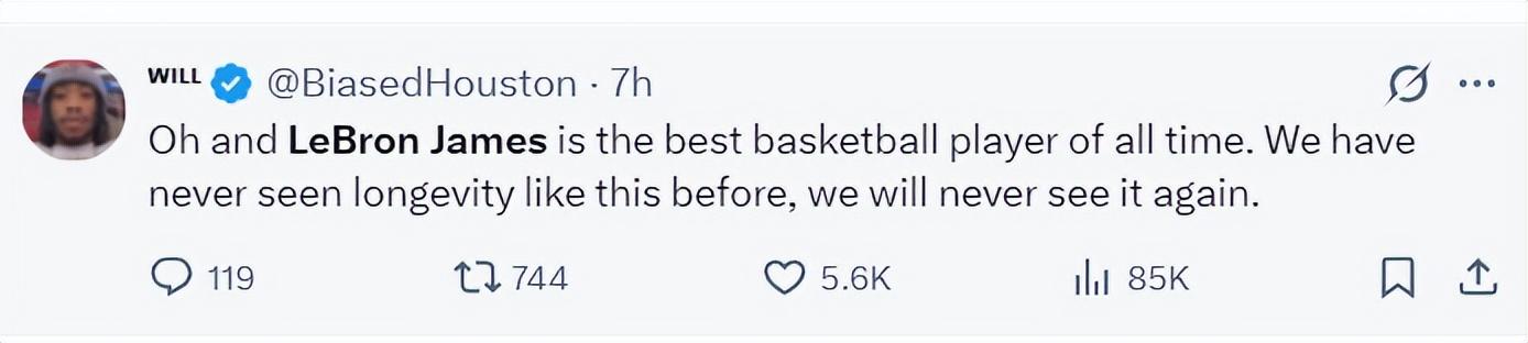 就連休媒都被勒布朗打服:勒布朗-詹姆斯是籃球運動史上最出色的球員。我們從未見過如此持久的輝煌表現,我們以後再也見不到這樣的球員了。