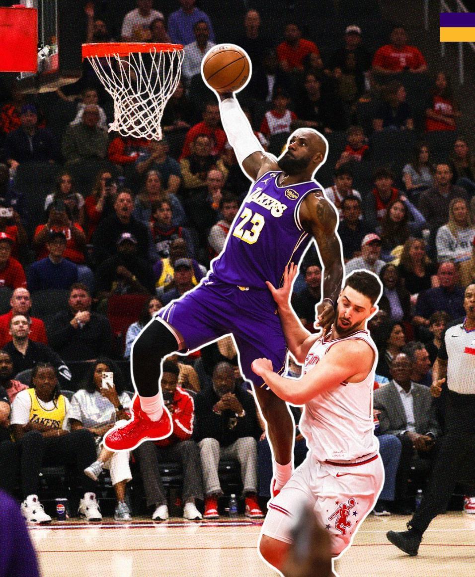 在勒布朗完成單臂劈扣空中接力時,美媒LH寫道:這是41歲球員能做到的事情?