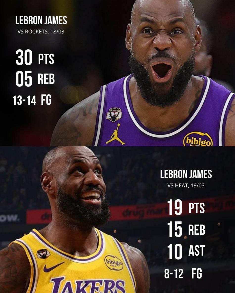 短短24小時,14中13拿30分5籃板+12中8拿19分15籃板10助攻,兩場運動戰26中21,命中率超過80%,外界還說勒布朗不行?他復出的五場比賽湖人都贏球了。